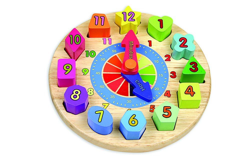 Aprende las horas, los números, los colores y las formas geométricas con este increíble reloj-encaje de 4 cm de grosor y 22 cm de diámetro.