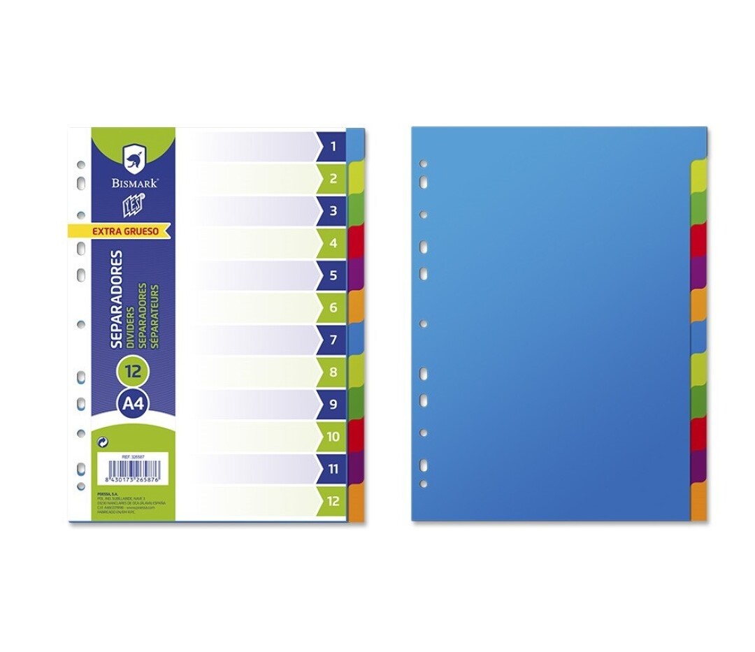 SEPARADOR ***POLIPROPILENO***EXTRA GRUESO 300 MICRAS*** DE 12 SEPARADORES A4
