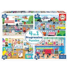 4 DIVERTIDOS PUZZLES DE CENTROS DE TRABAJO PROGRESIVOS DE 20,40,60 Y 80 PIEZAS.
